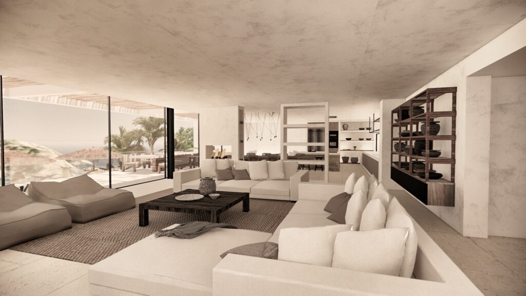 Mgag Arquitectos, estudio de arquitectura en Ibiza, apuesta por un minimalismo puro con techos desnudos y grandes ventanales que conectan interior y exterior. La madera natural aporta calidez, mientras una paleta de tonos tierra crea un ambiente sereno y armonioso, integrando el paisaje con el espacio interior.